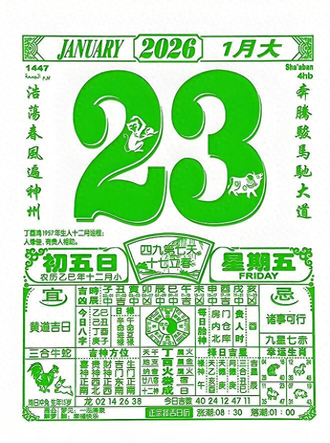 【每日黄历】1月23日, 星期五, 勾陈成日, 吉中带慎。