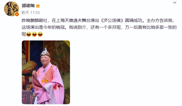 近日,郭德纲在社交平台上高调宣布一则喜讯。