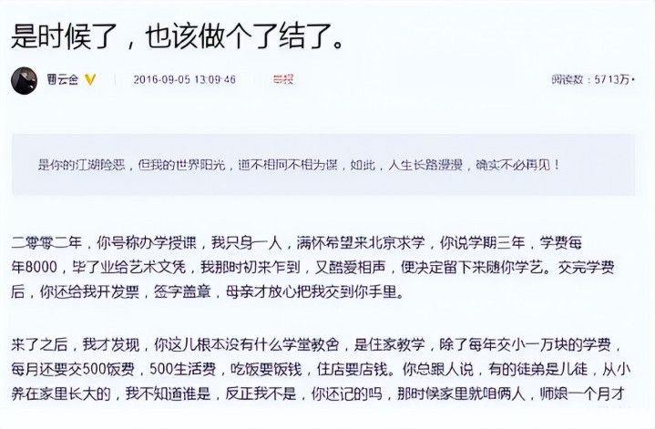 还说出了曹云金“被赶去公园长椅睡一周”、“拍戏分文未得”等等细节。