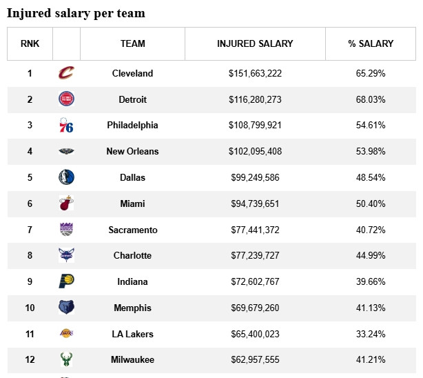 才开赛三周啊! NBA受伤球员薪资累计已达15亿!